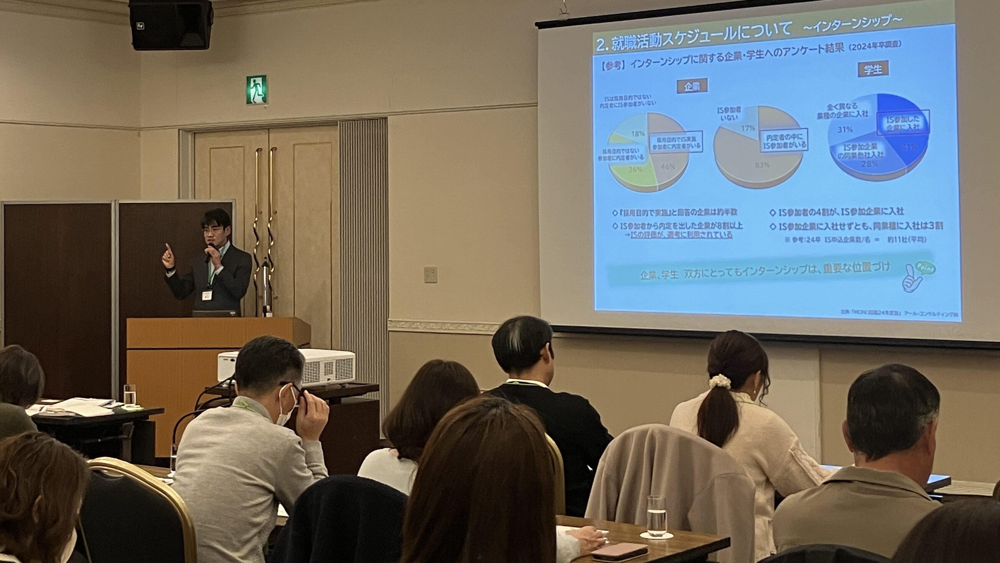 第1部では、大学職員から、キャンパスの様子や、留学制度、大学院進学、就職活動などについて説明がありました。質疑応答では、Uターン就職についてや、留学をすることの就活への影響、教員免許を取得する場合の就活の仕方、女子学生の就活状況、企業のインターンへの参加状況などについて参加者から質問があり、就職に対する関心の高さがうかがえました。第2部の懇親会でも学生の生活や就活について保護者同士の情報交換が活発に行われました。