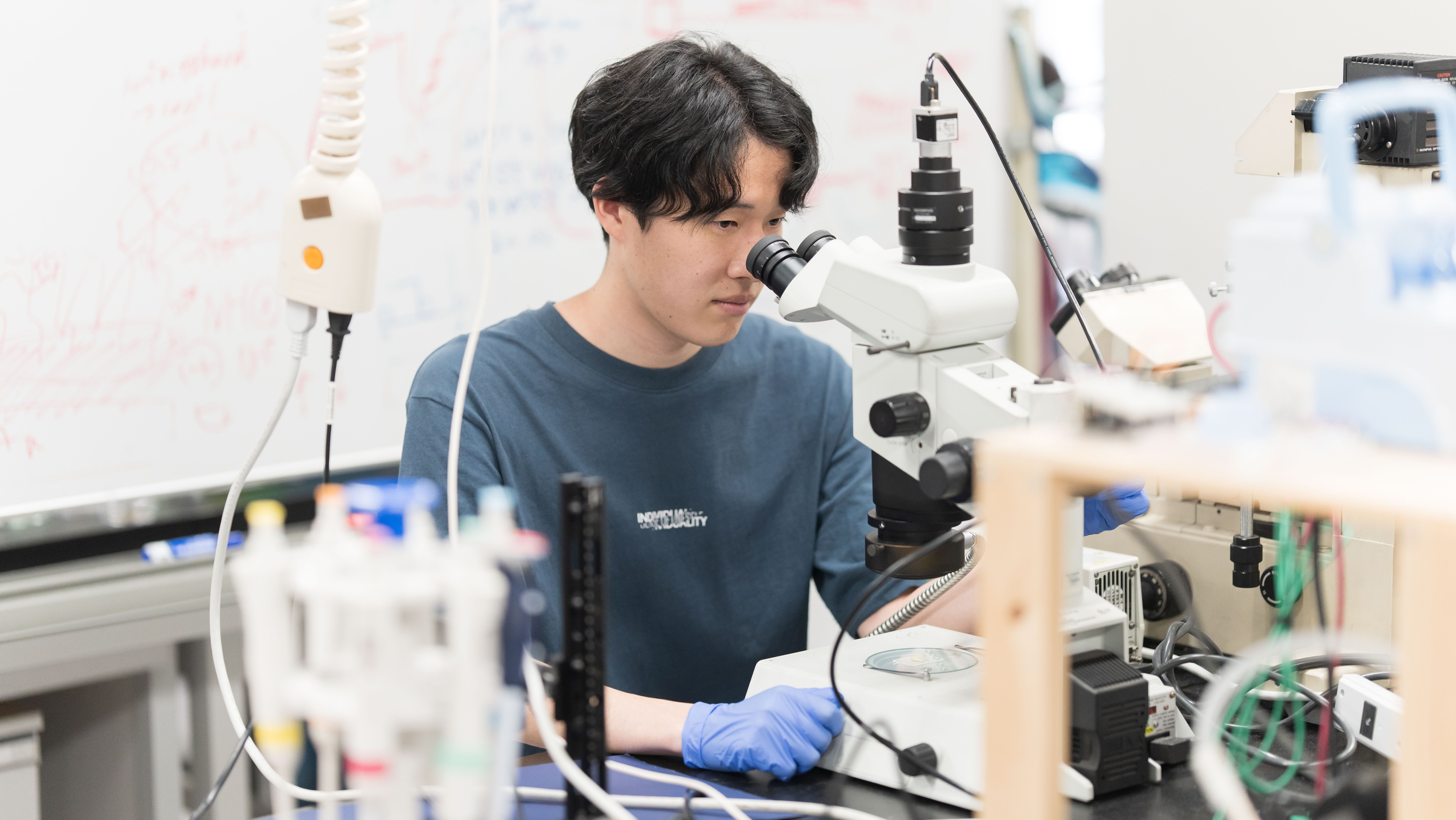 北山:そうでしたね。先輩もいなくてゼロからのスタートだったので、長房くんとは苦楽を共にして連帯感が深まりました。まだ実験の設備が整ってなかったので、ホームセンターで材料を買ってくるなどして自分たちで作った機器がたくさんあります。